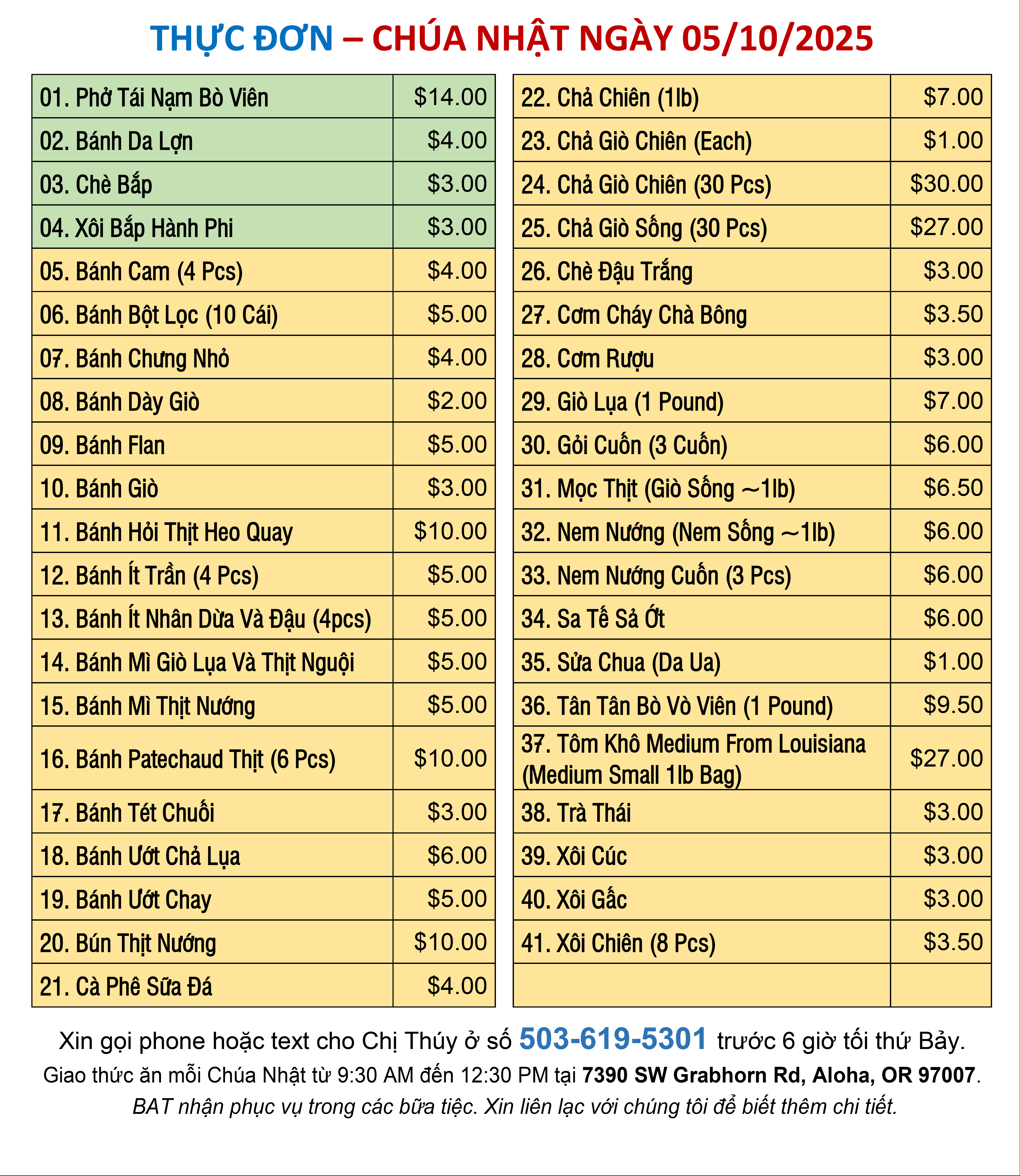 Thứ Bảy đầu tháng: |
